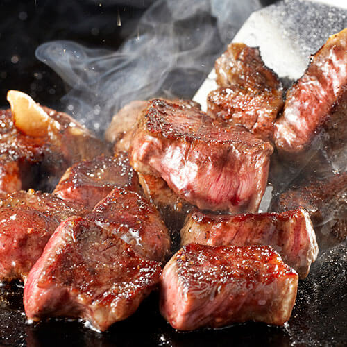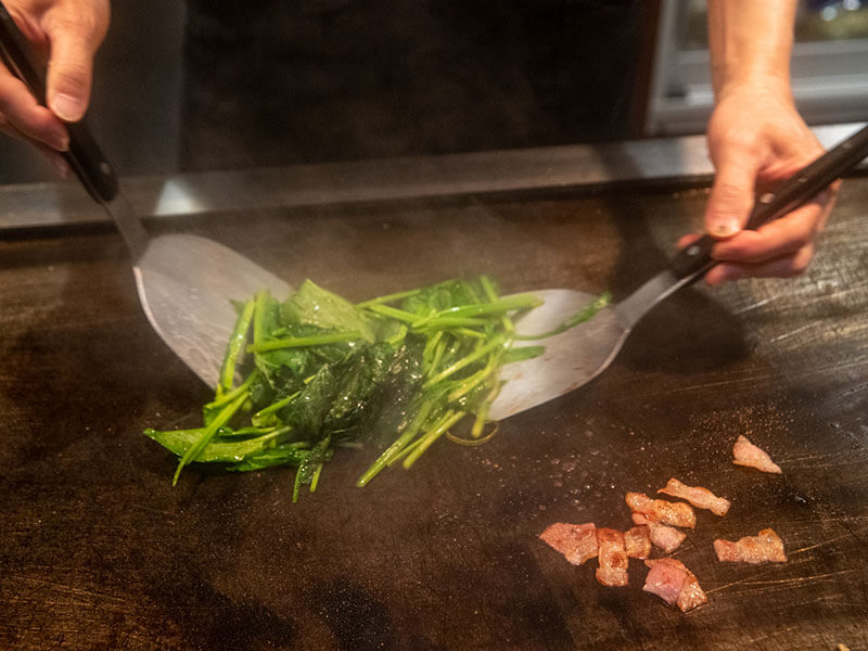 鉄板の高温で一気に焼き上げることで、素材本来の旨みと香ばしさを引き出します。